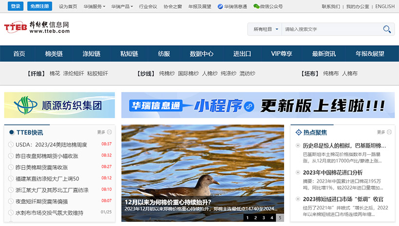 輸入m.ahtkzgxzhy.com 或者瀏覽器搜索“棉紡織信息網”進入網站首頁。網站包含滌短、粘短、棉花及其下游紗線、坯布等產業鏈信息。